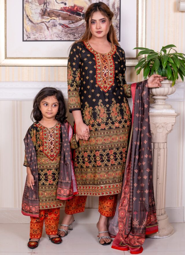 সেট অন্তর্ভুক্ত: কামিজ, ওড়না, পাজামা (মা ও মেয়ে)